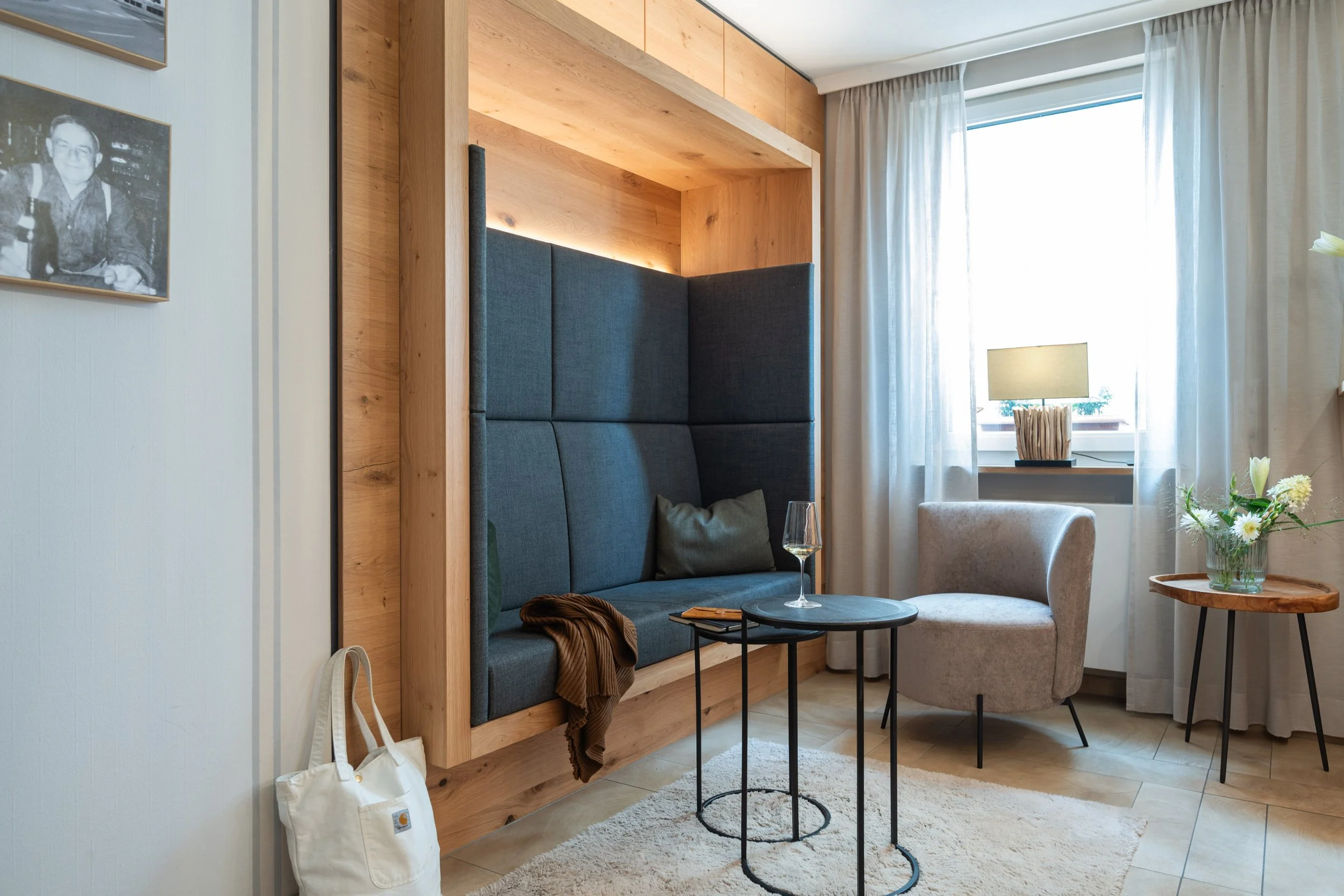 Ausgestattet mit TV, Telefon, Internetzugang (W-Lan), Haarfön, Dusche und WC, großzügigem Balkon. Einem Schlafzimmer mit Doppelbett 180 x 200 cm. Einem Wohnzimmer mit zwei Boxspringsofas jeweils 160 × 200 cm zum umklappen. Einer kleinen Küchenzeile mit Esstisch und einem großzügigen Bad. Das Appartement ist behindertenfreundlichund über einen Aufzug zu erreichen.